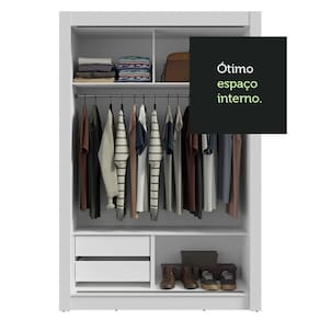 Organização ideal: Perfeito para um quarto de solteiro, o modelo conta com diversos nichos internos e duas gavetas, que facilitam a organização de roupas, calçados e acessórios. O tubo cabideiro metálico é ideal para pendurar roupas longas.