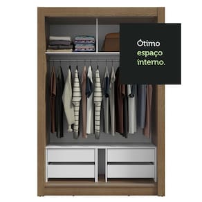 Espaço e organização: Perfeito para quarto de solteiro, o modelo conta com diversos nichos internos e quatro gavetas, que facilitam a organização de roupas, calçados e acessórios. O tubo cabideiro metálico é ideal para pendurar roupas longas.