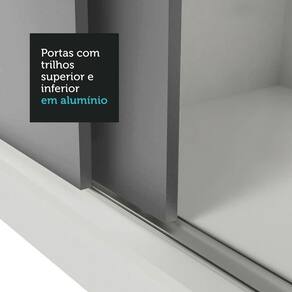 Portas de correr: O móvel é equipado com portas de correr que deslizam suavemente, graças aos trilhos em alumínio, garantindo um funcionamento tranquilo e sem esforço. Uma delas conta com espelhos, que são muito úteis no dia a dia e deixam o móvel ainda mais elegante.