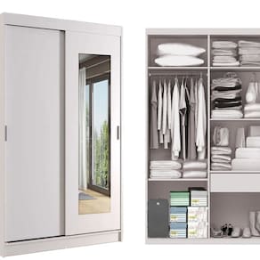 Nosso lindo Guarda Roupa Palhoça possui 2 Portas de correr, uma delas com espelho, 1 Gaveta interna, 1 espaço com cabideiro. É um produto de excelente qualidade, diferenciado pela sua resistência, durabilidade, funcionalidade e beleza, ele é a melhor opção para deixar seu dormitório muito mais arrumado e convidativo. Gaveta com corrediças metálicas, parte interna espaçosa, com 6 divisões internas que oferecem praticidade e organização, puxadores slim em metal, que oferecem um design moderno para o ambiente. Se encaixa facilmente em vários estilos de decoração com cores modernas. Pode ser utilizado tanto para casal como para solteiro. Acabamento da Prateleira: Finish Foil Escala de Brilho da Prateleira: Semi-Fosco Possui Cabideiros: Sim Acabamento da Gaveta: Finish Foil Escala de Brilho da Gaveta: Semi-Fosco Material do Puxador da Gaveta: Metal Possui Organizador de Gaveta: Não Acabamento da Porta: Finish Foil Escala de Brilho da Porta: Semi-Fosco Material do Puxador da Porta: ABS Altura do Espelho: 160 cm Ambiente Principal: Quarto codigo_ean: 7900288022783 Complexidade da Montagem: Alta: deve ser montado por um montador especializado Cor: Branco Cor da Porta: Branco Cor do Produto: Branco Cor do Puxador: Marrom Cor Interna: Madeirado Escala de Brilho: Semi-Fosco Espessura da Estrutura (mm): 15 mm Espessura das Portas (mm): 15 mm Espessura das Prateleiras (mm): 15 mm Espessura do Espelho: 3 mm Espessura do Fundo (mm): 3 mm Espessura do Fundo das Gavetas (mm): 3 mm Formato do Espelho: Retangular Gaveta com Chave: Não Guarda-Roupa Suporta Até (kg): 40 kg Itens Inclusos: 1 Roupeiro Palhoça + Kit De Ferragens + Manual De Montagem Largura do Espelho: 26 cm Linha ou Coleção: Palhoça Manual de Montagem e Instalação: https://product-hub-prd.madeiramadeira.com.br/969889/documents/a62f19b0-8e68-4605-b61c-c63d328138962549765612417313465484079.pdf Marca: Móveis Menezes Material da Gaveta: MDP Material da Porta: MDP Material da Prateleira: MDP Material Principal: MDP modular: Não Necessita Montagem: Sim Nicho com Cabideiro: Sim Origem do Produto: Nacional Peso: 80 kg Peso Máximo por Gaveta: 5 kg Peso Máximo por Prateleira: 5 kg Porta Janelada: Não Possui Calceiros: Não Possui Capelinha: Não Possui Espaço para Vestidos Longos: Não Possui Espelho: Sim Possui Espelho Interno: Não Possui Ganchos: Não Possui iluminação: Não Possui Nichos: Não Possui Painel de TV: Não Possui Penteadeira: Não Possui Pés: Não Possui Portas: Sim Possui Prateleiras: Sim Possui Sapateira: Não Produto Montado: Sim Quantidade de Cabideiros: 01 Cabideiro Quantidade de Espelho: 01 Quantidade de Gavetas: 01 Gaveta Quantidade de Portas com Espelhos: 1 Porta com Espelho Quantidade de Prateleiras: 07 Prateleiras Recomendações de Uso, Manutenção e Limpeza: Deve ser feita com pano macio e seco ou levemente umedecido com água e sabão neutro. Não devem ser utilizados abrasivos como palha de aço e objetos cortantes; Sistema de Montagem: parafusos Suporta Até (kg): 5 kg Tipo de Corrediça da Gaveta: Metálica Simples Tipo de Dobradiça/Corrediça da Porta: Metálica Tipo de Fixação do Espelho: Parafusos Tipo de Gaveta: Interna Tipo de Guarda-Roupa: Solteiro Tipo de Puxador da Gaveta: Não Possui Tipo de Puxador da Porta: Externo Marca: Móveis Menezes