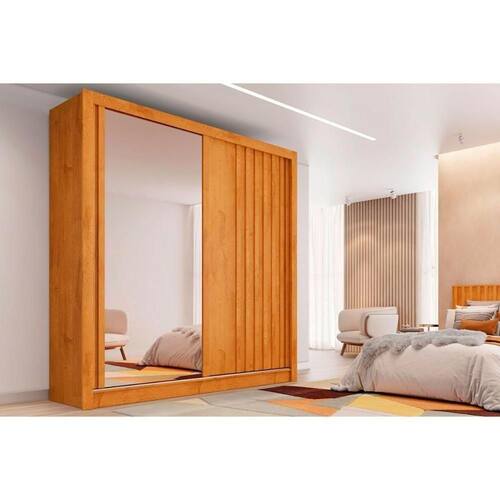 Guarda Roupa Solteiro 2 Portas De Correr (1 Ripada E 1 C/ Espelho) E 4 Gavetas Lugano Peroba - Europa