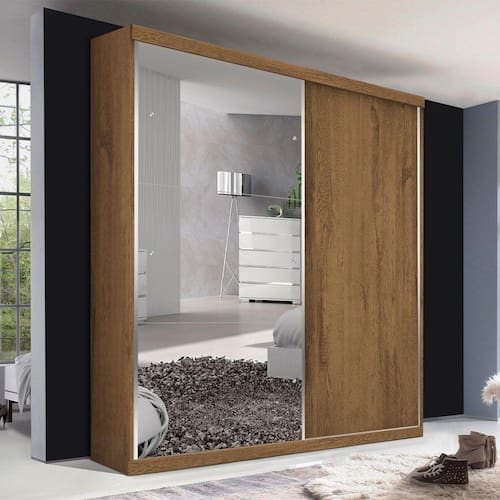 Guarda Roupa Solteiro 2 Portas de Correr 2 Gavetas e 3 Espelhos Salvador Plus Minastex - Bege
