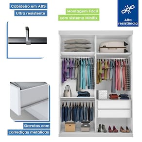 O Guarda-Roupa Nala Top vai manter o seu quarto arrumado e com uma decoração moderna. Confeccionado com matérias de qualidade, ele possui 2 portas de correr e 2 gavetas com corrediças metálicas, garantindo assim a resistência ao abrir e fechar. Suas prateleiras são espaçosas e vão deixar as suas roupas sempre à mão. Demais não é? Leva. Acabamento da Prateleira: Pintura Escala de Brilho da Prateleira: Brilhante Possui Cabideiros: Sim Acabamento da Gaveta: Pintura Escala de Brilho da Gaveta: Brilhante Possui Organizador de Gaveta: Não Acabamento da Porta: Pintura Escala de Brilho da Porta: Fosco Material do Puxador da Porta: Alumínio Altura do Espelho: 66.5 Ambiente Principal: Quarto Complexidade da Montagem: Alta: deve ser montado por um montador especializado Cor: Branco Cor do Produto: Branco Escala de Brilho: Fosco Espessura do Espelho: 3 Formato do Espelho: Retangular Gaveta com Chave: Não Itens Inclusos: 1 Guarda Roupa, Kit Ferragens e Manual de Montagem Largura do Espelho: 66.90000000000001 Linha ou Coleção: Nala Top Manual de Montagem e Instalação: https://product-hub-prd.madeiramadeira.com.br/881352/documents/831cd729-e92f-41bc-816e-94720df3eb89alvadortop2pts350128350129.pdf Material da Gaveta: MDP Material da Porta: MDP Material da Prateleira: MDP Material Principal: MDP modular: Não Necessita Montagem: Sim Origem do Produto: Nacional Peso: 113.5 Peso Máximo por Gaveta: 6 Peso Máximo por Prateleira: 15 Possui Calceiros: Não Possui Espaço para Vestidos Longos: Não Possui Espelho: Sim Possui Espelho Interno: Não Possui Ganchos: Não Possui Pés: Não Possui Portas: Sim Possui Prateleiras: Sim Possui Sapateira: Não Quantidade de Espelho: 06 Espelhos com Tamanhos Iguais Quantidade de Gavetas: 02 Gavetas Quantidade de Prateleiras: 02 Prateleiras Recomendações de Uso, Manutenção e Limpeza: Limpar com flanela limpa e seca. Não usar produtos abrasivos. Sistema de Montagem: Parafuso e minifix Suporta Até (kg): 70 Tipo de Corrediça da Gaveta: Metálica Simples Tipo de Dobradiça/Corrediça da Porta: Alumínio Tipo de Fixação do Espelho: Parafusos Tipo de Gaveta: Interna Tipo de Guarda-Roupa: Solteiro Tipo de Puxador da Gaveta: Embutido Tipo de Puxador da Porta: Externo