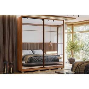 Guarda Roupa Solteiro 2 Portas De Correr 3 Gavetas C/ Espelho E Pés Belga Nogueira - Demóbile