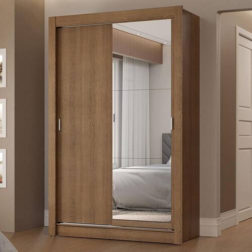 Portas de correr: O móvel é equipado com portas de correr que deslizam suavemente, graças aos trilhos em alumínio, garantindo um funcionamento tranquilo e sem esforço. Uma delas conta com espelhos, que são muito úteis no dia a dia e deixam o móvel ainda mais elegante.
