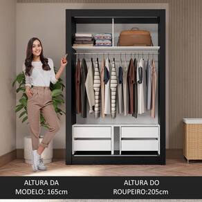 Espaço e organização: Perfeito para quarto de solteiro, o modelo conta com diversos nichos internos e quatro gavetas, que facilitam a organização de roupas, calçados e acessórios. O tubo cabideiro metálico é ideal para pendurar roupas longas.