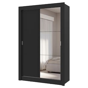 Portas de correr: O móvel é equipado com portas de correr que deslizam suavemente, graças aos trilhos em alumínio, garantindo um funcionamento tranquilo e sem esforço. Uma delas conta com espelhos, que são muito úteis no dia a dia e deixam o móvel ainda mais elegante.