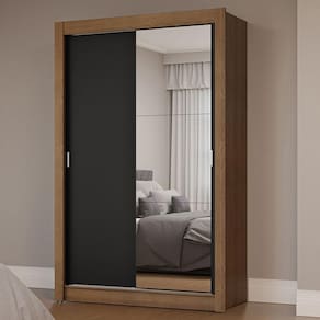 Portas de correr: O móvel é equipado com portas de correr que deslizam suavemente, graças aos trilhos em alumínio, garantindo um funcionamento tranquilo e sem esforço. Uma delas conta com espelhos, que são muito úteis no dia a dia e deixam o móvel ainda mais elegante.
