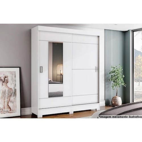 Guarda Roupa Solteiro 2 Portas de Correr e 2 Gavetas c/ Espelho e Pés Briz B66 Branco - Henn