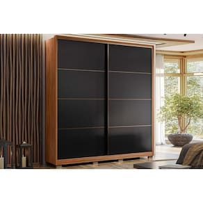 Guarda Roupa Solteiro 2 Portas de Correr e 3 Gavetas c/ Pés Belga Flex Nogueira/Nogueira ou Preto - Demóbile