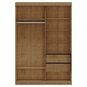 Características: Estrutura 100% em Madeira Maciça Pintura Acetinada Verniz PU e UV Amplo Espaço para Armazenamento 02 Gavetas com Corrediças Telescópicas Gaveta com Fundo Falso 02 Portas de Correr com Amortecimento Anti-empenamento e Puxadores Metálicos Pés Opcionais Cabideiros em Alumínio (peso máximo suportado 08kg distribuídos) Peso Máximo Suportado pelas Prateleiras 08kg Distribuídos Peso Máximo Suportado pelas Gavetas 05kg Distribuídos