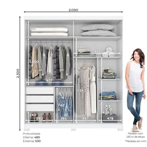 FICHA TÉCNICA: Cor Interna: Pintura UV Texturizada Acabamento: Pintura UV Escala de Brilho: Brilhante Material Principal: MDP Qtd. Gavetas: 3 Peso Máximo por Gaveta: 3 Material do Puxador Gaveta: Alumínio Material da Corrediça: Metálica Simples Material da Gaveta: MDP Qtd. Portas: 2 Material das Portas: MDP Material da Dobradiça: Metálica Material do Puxador Porta: Alumínio Tipo Porta: Correr Qtd. Prateleiras: 5 Peso Máximo por Prateleira: 8 Material da Prateleira: MDP Qtd. Pés: 6 Pés Reguláveis: Não Material Pés: ABS Altura Pés/Rodapés: 50 mm Possui Rodízios: Não Produto Suporte até -Kg-: 49 Possui Vidro: Não Possui Espelho: 2 Medida do Espelho: 77,8 x 51,5 x 0,3 Cm Possui Espaço para Vestidos Longos: 1 Possui Iluminação: Não Possui Ganchos: Não Medidas Montado: 230 x 200 x 50 Cm Peso Montado: 125 Kg Ean: 7890022110930