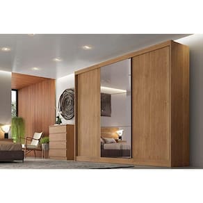 Guarda Roupa Solteiro 3 Portas (1 c/ Espelho) e 6 Gavetas Toulon/Sonetto Plus Cumaru/Fendi - Horizonte