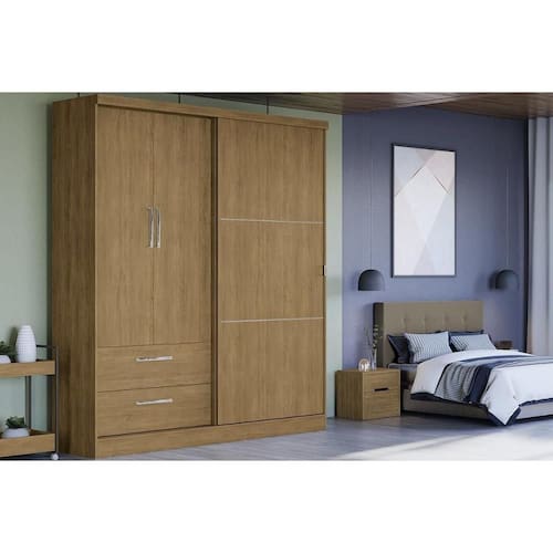 Guarda Roupa Solteiro 3 Portas (1 de Correr) e 2 Gavetas C533 Freijó - Kappesberg