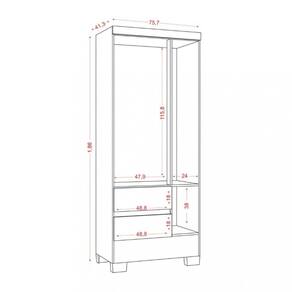 Características: Estrutura em MDP 12mm e 15mm de espessura 3 portas Dobradiças metálicas Puxadores de MDF 25mm Cabideiro de madeira revestido em PVC 2 gavetas Corrediças metálicas Acabamento em verniz texturizado fosco Pés de PVC resistentes