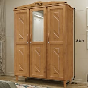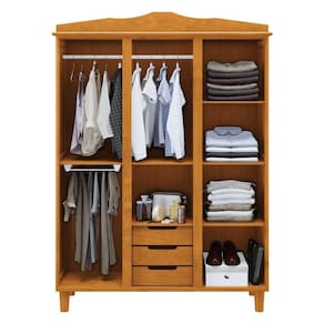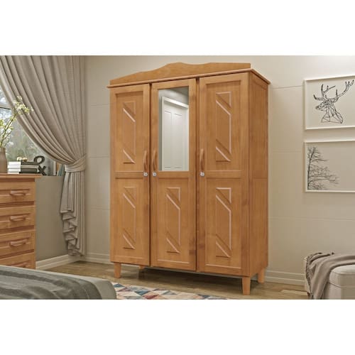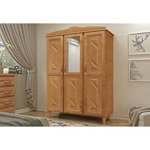 Guarda-Roupa Solteiro 3 Portas 3 Gavetas Internas com Espelho Brasil em Madeira - Cavazotto Mel -