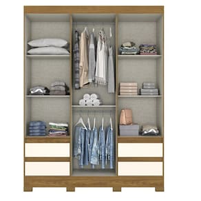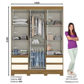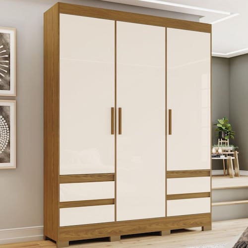 O guarda roupa Lema é versátil. Tem quatro gavetas externas e três portas, leves e resistentes, moderno transforma o visual do seu ambiente. Com design inteligente é espaçoso, ideal para guardar objetos maiores caso seja necessário, facilitando o seu dia-a-dia. Tem 2150mm de altura, 1625mm de largura e 450mm de profundidade. Acabamento da Prateleira: Pintura Texturizada UV Escala de Brilho da Prateleira: Fosco Possui Cabideiros: Sim Acabamento da Gaveta: Pintura Texturizada UV Escala de Brilho da Gaveta: Fosco Tipo de Corrediça: Metálica Simples Possui Organizador de Gaveta: Não Acabamento da Porta: Pintura Escala de Brilho da Porta: Brilhante Material do Puxador da Porta: ABS Altura dos Pés: 5 cm Altura Máxima dos Pés: 5.0000 Ambiente Principal: Quarto codigo_ean: 7909903172506 Complexidade da Montagem: Média: pode ser montado por mais de uma pessoa e/ou necessite de maior conhecimento para montagem Cor: Marrom/Off White Cor do Produto: Marrom/Off White Cor Interna: Trama Escala de Brilho: Fosco Informações Complementares: O Kit Espelho com 1 unid pode ser opcional com as seguintes medidas: A 1250 x L 350 x P 3mm Itens Inclusos: 1 Guarda Roupa, Kit Ferragens e Manual de Montagem Linha ou Coleção: Lema Manual de Montagem e Instalação: https://product-hub-prd.madeiramadeira.com.br/807576/documents/b706884a-12af-44c6-a0b4-c1479d5f19041081216b55roupeiro3pts4gav.pdf Material da Gaveta: MDP Material da Porta: MDP Material da Prateleira: MDP Material dos Pés: Plástico Material Principal: MDP Montagem Flex: Não Necessita Montagem: Sim Origem do Produto: Nacional Peso: 94 kg Peso Máximo por Gaveta: 3 kg Peso Máximo por Prateleira: 8 kg Possui Calceiros: 01 Possui Espaço para Vestidos Longos: Não Possui Espelho: Não Possui Espelho Interno: Não Possui Ganchos: Não Possui iluminação: Não Possui Painel de TV: Não Possui Pés: 08 Possui Portas: Sim Possui Prateleiras: Sim Possui Sapateira: Não Produto Montado: Sim Recomendações de Uso, Manutenção e Limpeza: Para limpeza do seu móvel, use uma flanela seca ou umedecida. N'ao utilize produtos químicos que possam danificar o produto.. Sistema de Montagem: Parafusos e Cavilhas Suporta Até (kg): 92 kg Tipo de Corrediça da Gaveta: Metálica Simples Tipo de Dobradiça/Corrediça da Porta: Metálica Tipo de Gaveta: Externa Tipo de Guarda-Roupa: Solteiro Tipo de Puxador da Gaveta: Não Possui Tipo de Puxador da Porta: Externo
