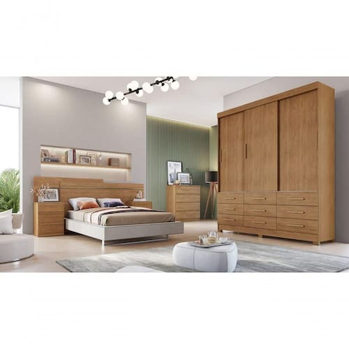 O Guarda Roupa Buriti vai proporcionar um ambiente aconchegante mantendo um visual sofisticado e funcional. Composto por peças de extrema qualidade e com excelente espaço interno bem distribuídos, oferecendo máxima organização de forma prática. Fabricado em 100% MDP, 3 portas de correr, possui 9 gavetas com corrediças telescópicas, puxadores com acabamento amadeirado e cabideiros em alumínio. Amplo espaço interno. Aproveite!