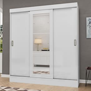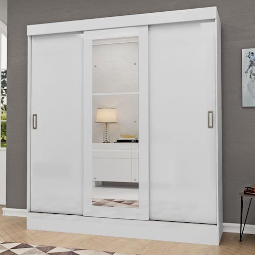 Características: Material do produto MDP 2 corrediças metálicas 2 cabideiros de madeira revestido Sistema de correr com roldanas Espelhos incluso Sistema de montagem com parafusos e cavilhas Conservação do Produto - Use somente uma flanela seca. Não molhe nem exponha o móvel à umidade, a luz solar diretamente ou outra forma de calor.
