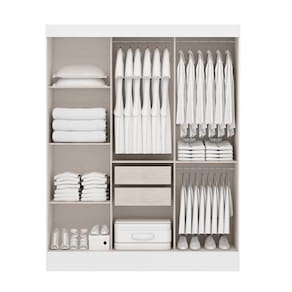 O roupeiro San Marino com espelho é ideal para qualquer espaço. Sua modulação interna compacta e versátil com quatro prateleiras, duas gavetas e dois cabideiros proporciona uma ótima organização.