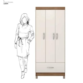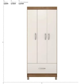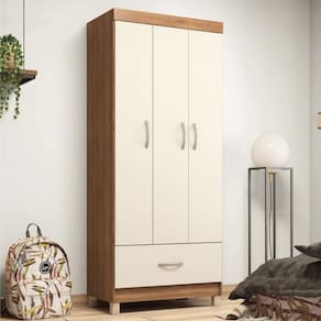 Com três portas e uma gaveta espaçosa, oferece amplo armazenamento para roupas, acessórios e objetos pessoais.