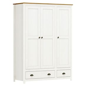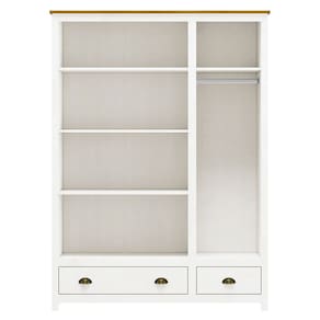Características: Estrutura em Madeira Maciça de Pinus Pintura Acetinada Verniz PU e UV Corrediças Telescópicas Dobradiças com Amortecimento Cabideiros em Alumínio (Peso Máximo Suportado 08kg Distribuídos) Puxadores Metálicos em Ouro Envelhecido Pés Alongados em Madeira Amplo Espaço para Armazenamento As Gavetas Suportam um Peso Máximo Distribuído de 5Kg As Prateleiras Suportam um Peso Máximo Distribuído de 10kg