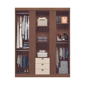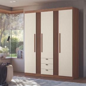 Esse Guarda Roupa é perfeito para você que procura sofisticação e versatilidade, possui detalhes ripados em madeira garantindo a elegância do ambiente.