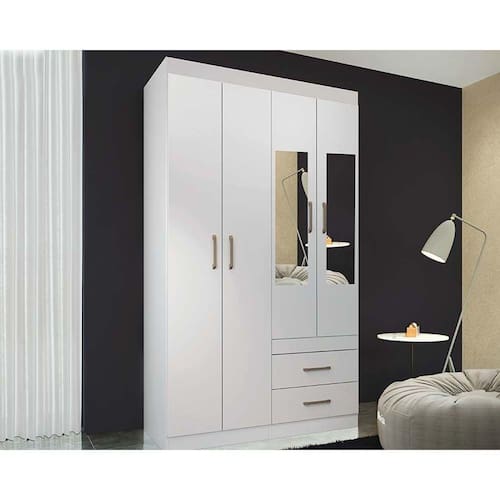 Guarda Roupa Solteiro 4 Portas (2 c/ Espelho) e 2 Gavetas Havana Star 4.2. Branco - Santos Andirá