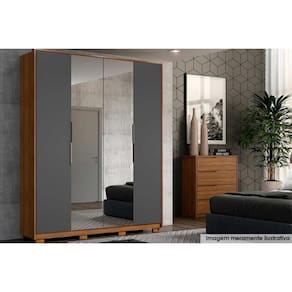 Material dos Cabideiros - Cabideira Metálico Tipo de Dobradiças - Dobradiças Metálicas Diferenciais das Portas - Porta c/ Espelho Quantidade de Portas - 4 Portas de Abrir Tipo de Corrediça - c/ Corrediças Telescópicas Quantidade de Gavetas - 3 Quantidade de Prateleiras - 2 Quantidade de Nichos - 5 Nichos