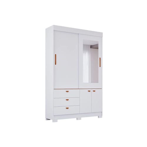 Guarda Roupa Solteiro 4 Portas (2 de Correr e 1 c/ Espelho) e 3 Gavetas c/ Pés Alice Branco - Panan