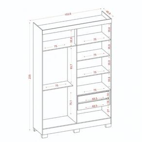 Dimensões: Altura: 235 cm Largura: 153,6 cm Profundidade: 46,8 cm Peso: 102,65 kg