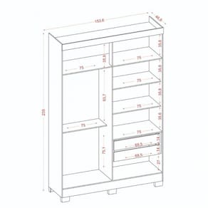 Dimensões: Altura: 235 cm Largura: 153,6 cm Profundidade: 46,8 cm Peso: 102,65 kg