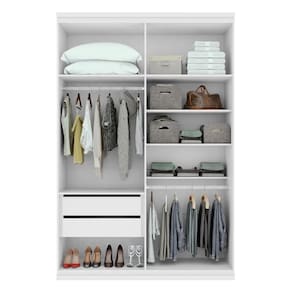 Imagens meramente ilustrativas, produto não acompanha objetos de decoração e eletrônicos; O produto pode sofrer alterações de tonalidade conforme o seu monitor; Produto não deve ficar exposto diretamente ao sol, calor e umidade excessivas; Recomendações de Limpeza: Utilize somente pano seco ou levemente umedecido; Ao receber, verifique a embalagem. Se detectar irregularidade recuse o e nos contate. Não nos responsabilizamos, no ato da , por subir escadas/elevadores, guinchos, içamentos ou quaisquer outros meios específicos de . Nós não nos responsabilizamos pela montagem e por problemas causados pela montagem realizada por você ou montador contratado. Quantidade de Gavetas: 2 | Cor: Branco | Quantidade de Portas: 4 | Tipo de Porta: Bater | Tipo de Gaveta: Corrediça telescópica | Marca: Lopas | Suporta Até (kg): 10kg por prateleira, 5kg por gaveta | Possui Prateleiras: Sim | Possui Portas: Sim | Possui Pés: Sim | Possui Nichos: Sim | Possui Gavetas: Sim | Gaveta com Chave: Não | Possui Espelho: Não | Possui Calceiros: Não | Possui Cabideiros: Sim | Quantidade de Espelhos: Não possui | Necessita Montagem: Sim | Material: MDF | Garantia: 3 meses | Acabamento: Pintura e acabamento em micro textura | Altura (cm): 230 | Largura (cm): 154 | Profundidade (cm): 47 | Modelo: Alonzo | Quantidade de Caixa de embalagem: 5 | Inclui manual de montagem: Sim Ean: 7894121370301