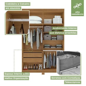 Chega de bagunça e desordem. Com este Guarda-Roupa Alonzo, seu quarto ficará muito mais organizado e confortável. Ideal para quem gosta de encontrar roupas e acessórios de forma rápida e precisa. Demais, né? Aproveite! Acabamento da Prateleira: Pintura Escala de Brilho da Prateleira: Brilhante Possui Cabideiros: 01 Acabamento da Gaveta: Pintura Escala de Brilho da Gaveta: Brilhante Material do Puxador da Gaveta: Possui Organizador de Gaveta: Não Acabamento da Porta: Pintura Escala de Brilho da Porta: Fosco Material do Puxador da Porta: MDF Acabamento dos Pés: Pintura Acompanha Cama Auxiliar: Acompanha Colchão: Altura da Cama: Altura do Espelho: Altura do Espelho 01: Altura do Espelho 02: Altura do Espelho 03: Altura do Espelho 04: Altura do Espelho 05: Altura do Espelho 06: Altura dos Pés: 7 Ambiente Principal: Quarto Cama Auxiliar Acompanha Colchão: Cama Auxiliar Suporta Até (kg): Cama Suporta Até (kg): Complexidade da Montagem: Alta: deve ser montado por um montador especializado Cor: Amêndoa Clean/Branco Cor do Produto: Amêndoa Clean/Branco Cor Flex: Cor Interna: Escala de Brilho: Fosco Espessura do Espelho: Fita Integrada: Formato do Espelho: Gaveta com Chave: Não Guarda-Roupa Suporta Até (kg): Informações Complementares: Itens Inclusos: 1 Guarda Roupa, Kit Ferragens e Manual de Montagem Largura da Cama: Largura do Espelho: Largura do Espelho 01: Largura do Espelho 02: Largura do Espelho 03: Largura do Espelho 04: Largura do Espelho 05: Largura do Espelho 06: Linha ou Coleção: Manual de Especificação Técnica: Manual de Montagem e Instalação: https://cdn2.madeiramadeira.com.br/atributo/m-veis-lopas/773049-51486-a3-manual-de-montagem-gr-alonzo-4pts-new.pdf Material da Gaveta: MDF Material da Porta: MDF Material da Prateleira: MDF Material dos Pés: PVC Material Principal: MDF Montagem Flex: Necessita Montagem: Sim Origem do Produto: Nacional Peso: 113 Peso Máximo por Gaveta: 5 Peso Máximo por Prateleira: 12 Possui Calceiros: 01 Possui Espaço para Vestidos Longos: Possui Espelho: Não Possui Espelho Interno: Não Possui Ganchos: Possui iluminação: Não Possui Painel de TV: Não Possui Pés: 06 Possui Portas: 04 Possui Prateleiras: 05 Possui Sapateira: Profundida de Cama: Quantidade de Espelho: Recomendações de Uso, Manutenção e Limpeza: Limpar Somente Com Pano Macio e Seco, Não Colocar Diretamente Em Incidência da Luz Solar, Não Colocar Em Lugar Úmido. Sapatas Niveladoras: Não Sistema de Montagem: Parafusos e Minifix. Tamanho do Colchão Indicado (L x C): Tamanho do Colchão Indicado Cama Auxiliar: Tipo de Corrediça da Gaveta: Metálica Telescópica Tipo de Dobradiça/Corrediça da Porta: Metálica Tipo de Estrado: Tipo de Fixação do Espelho: Tipo de Gaveta: Interna Tipo de Guarda-Roupa: Solteiro Tipo de Madeira Maciça: Tipo de Madeira Maciça da Gaveta: Tipo de Madeira Maciça da Porta: Tipo de Madeira Maciça da Prateleira: Tipo de Madeira Maciça do Puxador da Gaveta: Tipo de Madeira Maciça do Puxador da Porta: Tipo de Madeira Maciça dos Pés: Tipo de Puxador da Gaveta: Embutido Tipo de Puxador da Porta: Externo