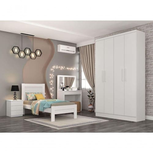 Guarda Roupa Solteiro 4 Portas 2 Gavetas - Amsterdam-Neve - Tcil Móveis