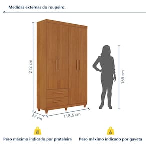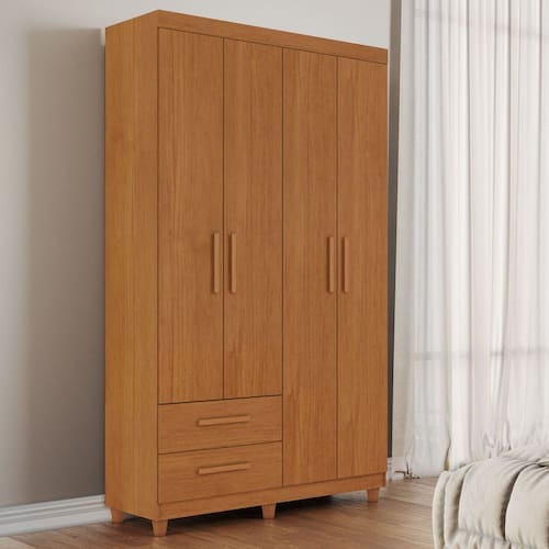 Sim, o produto acompanha um manual de montagem. Acabamento da Prateleira: Pintura Escala de Brilho da Prateleira: Fosco Possui Cabideiros: Sim Acabamento da Gaveta: Pintura Escala de Brilho da Gaveta: Semi-Brilho Material do Puxador da Gaveta: MDF Possui Organizador de Gaveta: Não Acabamento da Porta: Pintura Escala de Brilho da Porta: Semi-Brilho Material do Puxador da Porta: MDF Acabamento dos Pés: Pintura Altura dos Pés: 7 cm Altura Máxima dos Pés: 7.0000 Ambiente Principal: Quarto codigo_ean: 7900288001139 Complexidade da Montagem: Média: pode ser montado por mais de uma pessoa e/ou necessite de maior conhecimento para montagem Cor: Cinamomo Cor do Produto: Cinamomo Cor do Puxador: Marrom Escala de Brilho: Semi-Brilho Espessura da Estrutura (mm): 12 mm Espessura das Portas (mm): 15 mm Espessura das Prateleiras (mm): 12 mm Espessura do Fundo (mm): 2,5 mm Espessura do Fundo das Gavetas (mm): 2 mm Gaveta com Chave: Não Itens Inclusos: 1 Guarda Roupa + 1 Kit Ferragens + 1 Manual de montagem. Linha ou Coleção: Canadá Manual de Montagem e Instalação: https://product-hub-prd.madeiramadeira.com.br/961997/documents/4a728002-43c8-4732-870b-edff0070dbb006roupeirocanad4portas2018.pdf Marca: Conquista Móveis Material da Gaveta: MDP Material da Porta: MDP Material da Prateleira: MDP Material dos Pés: PVC Material Principal: MDP modular: Não Necessita Montagem: Sim Origem do Produto: Nacional Peso: 79,39 kg Peso Máximo por Gaveta: 5 kg Peso Máximo por Prateleira: 15 kg Possui Calceiros: Não Possui Espelho: Não Possui Pés: 06 Possui Portas: Sim Possui Prateleiras: Sim Produto Montado: Sim Quantidade de Gavetas: 02 Gavetas Quantidade de Prateleiras: 05 Prateleiras Recomendações de Uso, Manutenção e Limpeza: Na limpeza não utilizar produtos químicos e abrasivos usar apenas um pano umedecido para garantir a maior durabilidade do móvel. Sistema de Montagem: Parafusos, Cavilhas e Pregos Tipo de Corrediça da Gaveta: Metálica Telescópica Tipo de Dobradiça/Corrediça da Porta: Metálica Tipo de Gaveta: Externa Tipo de Guarda-Roupa: Solteiro Tipo de Puxador da Gaveta: Externo Tipo de Puxador da Porta: Externo