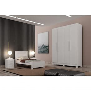 Guarda Roupa Solteiro 4 Portas 2 Gavetas - Canadá-Branco - Leifer Móveis