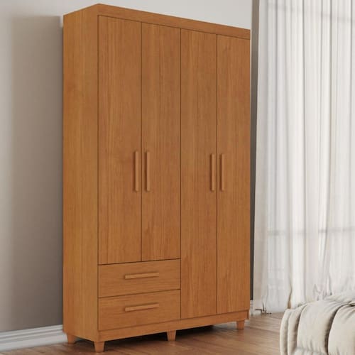 Guarda Roupa Solteiro 4 Portas 2 Gavetas Canadá Plus Conquista Móveis - Marrom Chocolate