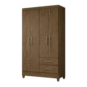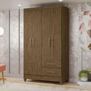Características Estrutura em MDP de 12mm. Pintura em acabamento UV. 04 Portas articuladas com dobradiças metálicas. 02 Gavetas externas com corrediças metálicas. Cabideiros em madeira. Amplo espaço interno com prateleiras. Puxadores na cor bronze. Pés em PVC.
