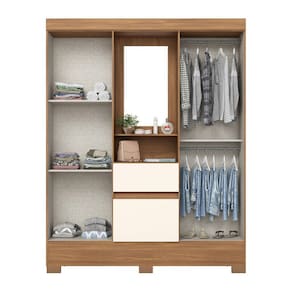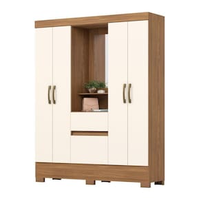 Renove o seu quarto com o Guarda Roupa Miguel com 4 portas e 2 gavetas, perfeito para manter a organização do seu espaço. O Guarda Roupa possui espelho de 80x35cm e nichos para otimizar espaço, cabideiro e calceiro de madeira revestidas, gavetas com corrediças metálicas, puxadores em ABS na cor bronze e Pés em ABS. Produto Com design elegante e espaços amplos, ele oferece praticidade e funcionalidade para guardar suas roupas e acessórios. Aproveite essa oferta imperdível e tenha um quarto mais bonito e organizado. Acabamento da Prateleira: Pintura Texturizada UV Escala de Brilho da Prateleira: Fosco Possui Cabideiros: Sim Acabamento da Gaveta: Pintura Texturizada UV Escala de Brilho da Gaveta: Fosco Possui Organizador de Gaveta: Não Acabamento da Porta: Pintura Texturizada UV Escala de Brilho da Porta: Brilhante Material do Puxador da Porta: ABS Altura do Espelho: 60 cm Altura dos Pés: 5 Altura Máxima dos Pés: 5.0000 Ambiente Principal: Quarto codigo_ean: 7909903538395 Complexidade da Montagem: Alta: deve ser montado por um montador especializado Cor: Marrom/Off White Cor do Produto: Marrom/Off White Cor Interna: Trama (Bege Acinzantado) Escala de Brilho: Semi-Brilho Espessura do Espelho: 3 mm Formato do Espelho: Retangular Gaveta com Chave: Não Guarda-Roupa Suporta Até (kg): 38 kg Itens Inclusos: 1 Guarda Roupas, Kit Ferragens e Instrução de Montagem Largura do Espelho: 35 cm Linha ou Coleção: Miguel Manual de Montagem e Instalação: https://product-hub-prd.madeiramadeira.com.br/886715/documents/94c868ef-99d5-432a-97c5-3011bc294cee4pts2gavcpenteadeiramiguel.pdf Material da Gaveta: MDF/MDP Material da Porta: MDP Material da Prateleira: MDP Material dos Pés: ABS Material Principal: MDP modular: Não Necessita Montagem: Sim Origem do Produto: Nacional Peso: 59 kg Peso Máximo por Gaveta: 3 kg Peso Máximo por Prateleira: 8 kg Possui Calceiros: Não Possui Espelho: Sim Possui Espelho Interno: Não Possui Painel de TV: Não Possui Pés: 06 Possui Portas: Sim Possui Prateleiras: Sim Possui Sapateira: Não Produto Montado: Sim Quantidade de Espelho: 01 Quantidade de Gavetas: 02 Gavetas Quantidade de Prateleiras: 02 Prateleiras Recomendações de Uso, Manutenção e Limpeza: Para limpeza de seu móvel, use uma flanela seca ou umedecida. Não utilize produtos químicos que possam danificar o produto. Sistema de Montagem: Parafusos e Cavilhas Suporta Até (kg): 38 kg Tipo de Corrediça da Gaveta: Metálica Simples Tipo de Dobradiça/Corrediça da Porta: Aço Tipo de Fixação do Espelho: Molduras Tipo de Gaveta: Externa Tipo de Guarda-Roupa: Solteiro Tipo de Puxador da Gaveta: Não Possui Tipo de Puxador da Porta: Externo