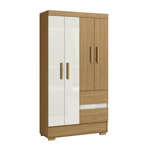 Características: Estrutura em MDP de 12mm e 15mm 4 Portas Dobradiças metálicas Puxadores de MDF 25mm 2 Gavetas Corrediças metálicas Cabideiro de madeira revestido em PVC Acabamento em verniz texturizado fosco Pés em PVC
