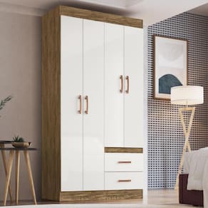 Características: Estrutura em MDP Acabamento Semi Brilho 4 Portas 2 Gavetas 2 Cabideiros em madeira Corrediças plásticas Dobradiça curva Nicho