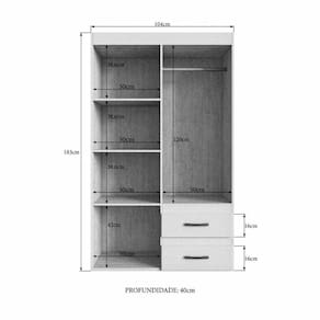 Dimensões: Altura: 183 cm Largura: 104 cm Profundidade: 40 cm Peso: 42,00 kg