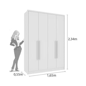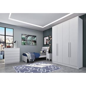 Guarda Roupa Solteiro 4 Portas 2 Gavetas - Dinamarca-Neve - Tcil Móveis - Branco