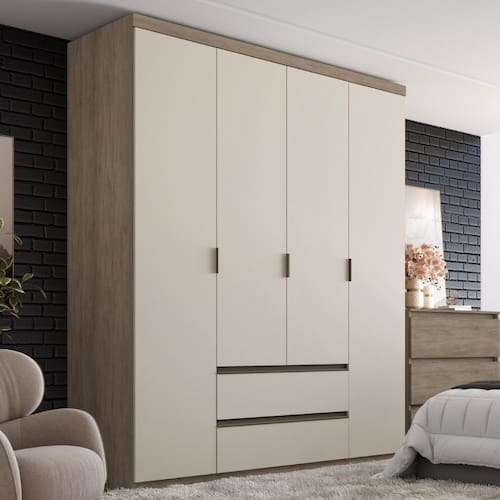Características: Estrutura 100 MDF 4 Portas 2 Gavetas 4 Prateleira removível Dobradiças metálica Com cabideiro em metal Corrediças telescópicas Peso suportado: 3 á 12kg