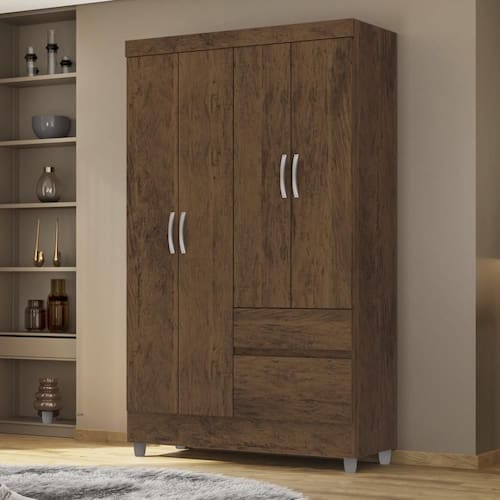 Guarda Roupa Solteiro 4 Portas 2 Gavetas Exemplar Plus Vila Rica