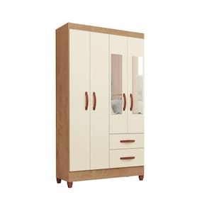 Roupeiro em madeira de mdp, com 04 portas, 02 espelhos, 02 gavetas, corrediças metálicas, pés, frente do produto toda em 15mm, 03 prateleiras, com cabide, acabamento em pintura UV, com espaço para roupas longas. Acabamento da Prateleira: Pintura UV Escala de Brilho da Prateleira: Fosco Possui Cabideiros: 01 Acabamento da Gaveta: Pintura UV Escala de Brilho da Gaveta: Brilhante Material do Puxador da Gaveta: PVC Possui Organizador de Gaveta: Não Acabamento da Porta: Pintura UV Escala de Brilho da Porta: Brilhante Material do Puxador da Porta: PVC Acabamento dos Pés: Pintura Acompanha Cama Auxiliar: Acompanha Colchão: Altura da Cama: Altura do Espelho: 50 Altura do Espelho 01: Altura do Espelho 02: Altura do Espelho 03: Altura do Espelho 04: Altura do Espelho 05: Altura do Espelho 06: Altura dos Pés: 7 Ambiente Principal: Quarto Cama Auxiliar Acompanha Colchão: Cama Auxiliar Suporta Até (kg): Cama Suporta Até (kg): Complexidade da Montagem: Média: pode ser montado por mais de uma pessoa e/ou necessite de maior conhecimento para montagem Cor: Canelato Rústico/Marrom Off White Cor do Produto: Canelato Rústico/Marrom Off White Cor Flex: Cor Interna: Ártico Escala de Brilho: Fosco Espessura do Espelho: 3 Fita Integrada: Sim Formato do Espelho: Quadrado Gaveta com Chave: Não Guarda-Roupa Suporta Até (kg): Informações Complementares: Itens Inclusos: 1 Guarda Roupa, Kit Ferragens e Manual de Montagem Largura da Cama: Largura do Espelho: 15 Largura do Espelho 01: Largura do Espelho 02: Largura do Espelho 03: Largura do Espelho 04: Largura do Espelho 05: Largura do Espelho 06: Linha ou Coleção: Light Manual de Especificação Técnica: Manual de Montagem e Instalação: https://cdn2.madeiramadeira.com.br/atributo/atualle-moveis/1201232-manual-de-montagem-roupeiro-4p-fortaleza-bc-3504.pdf Material da Gaveta: MDP Material da Porta: MDP Material da Prateleira: MDP Material dos Pés: PVC Material Principal: MDP Montagem Flex: Necessita Montagem: Sim Origem do Produto: Nacional Peso: 45.81 Peso Máximo por Gaveta: 6 Peso Máximo por Prateleira: 15 Possui Calceiros: Não Possui Espaço para Vestidos Longos: Possui Espelho: Sim Possui Espelho Interno: Não Possui Ganchos: Possui iluminação: Possui Painel de TV: Não Possui Pés: 04 Possui Portas: 04 Possui Prateleiras: 03 Possui Sapateira: Profundida de Cama: Quantidade de Espelho: 02 Espelhos com Tamanhos Iguais Recomendações de Uso, Manutenção e Limpeza: utilizar somente um paco úmidecido Sapatas Niveladoras: Não Sistema de Montagem: Parafusos, pregos, cavilhas, pinos. Tamanho do Colchão Indicado (L x C): Tamanho do Colchão Indicado Cama Auxiliar: Tipo de Corrediça da Gaveta: Metálica Simples Tipo de Dobradiça/Corrediça da Porta: Metálica Tipo de Estrado: Tipo de Fixação do Espelho: Fita Dupla Face Tipo de Gaveta: Externa Tipo de Guarda-Roupa: Solteiro Tipo de Madeira Maciça: Tipo de Madeira Maciça da Gaveta: Tipo de Madeira Maciça da Porta: Tipo de Madeira Maciça da Prateleira: Tipo de Madeira Maciça do Puxador da Gaveta: Tipo de Madeira Maciça do Puxador da Porta: Tipo de Madeira Maciça dos Pés: Tipo de Puxador da Gaveta: Externo Tipo de Puxador da Porta: Externo