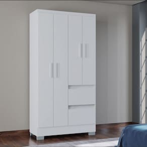 Roupeiro 4 portas 2 gavetas além de amplo espaço interno, seu design é moderno levando ainda mais sofisticação para a sua casa, suprindo todas as suas necessidades de roupa, cama e banho.