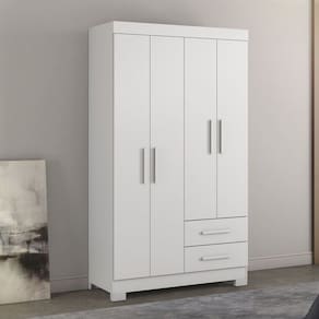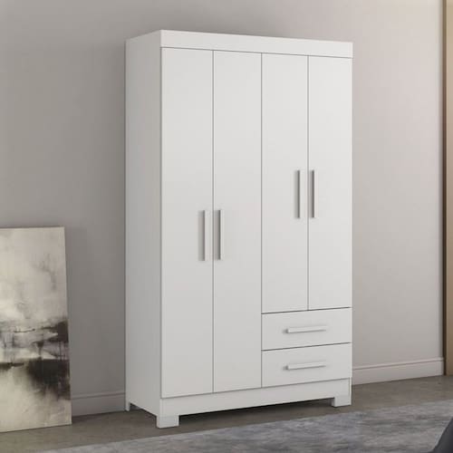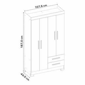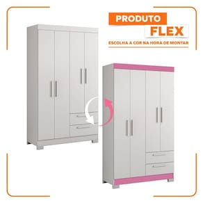 O roupeiro com 4 portas e 2 gavetas, sendo as gavetas com corrediça metálica, 3 prateleiras internas, possui 4 pesinhos, um cabideiro, puxador das gavetas e portas em plástico, produto ideal para quem está procurando algo para espaços pequenos porém com boa distribuição de espaço. Acabamento da Prateleira: Impressão Escala de Brilho da Prateleira: Semi-Brilho Possui Cabideiros: 01 Acabamento da Gaveta: Impressão Escala de Brilho da Gaveta: Semi-Fosco Material do Puxador da Gaveta: Plástico Possui Organizador de Gaveta: Não Acabamento da Porta: Impressão Escala de Brilho da Porta: Fosco Material do Puxador da Porta: Plástico Altura dos Pés: 5 cm Complexidade da Montagem: Alta: deve ser montado por um montador especializado Cor: Branco New/Rosa Cor do Produto: Branco New/Rosa Cor Flex: Cor Interna: Branco New Escala de Brilho: Semi-Fosco Gaveta com Chave: Não Guarda-Roupa Suporta Até (kg): 38 kg Itens Inclusos: 1 Guarda Roupa e Manual de Montagem. Linha ou Coleção: Manual de Montagem e Instalação: https://cdn2.madeiramadeira.com.br/atributo/notavel/455878-nt5005.pdf Material da Gaveta: MDP Material da Porta: MDP Material da Prateleira: MDP Material dos Pés: Plástico Material Principal: MDP Necessita Montagem: Sim Origem do Produto: Nacional Peso: 57 kg Peso Máximo por Gaveta: 3 kg Peso Máximo por Prateleira: 5 kg Possui Calceiros: Não Possui Espelho: Não Possui Pés: 04 Possui Portas: 03 Possui Prateleiras: 03 Recomendações de Uso, Manutenção e Limpeza: Para maior durabilidade, recomenda-se que a limpeza do móvel seja feita da seguinte forma: Nas partes externas (portas, laterais e frente da gaveta) e internas, a limpeza deverá ser feita com pano limpo e levemente umedecido em água e sabão neutro. Em seguida, utilizar um pano limpo e seco. Sapatas Niveladoras: Não Sistema de Montagem: Parafusos e Minifix. Tipo de Corrediça da Gaveta: Metálica Simples Tipo de Dobradiça/Corrediça da Porta: Aço Tipo de Guarda-Roupa: Solteiro Tipo de Madeira Maciça: Pinus Tipo de Madeira Maciça da Gaveta: Pinus Tipo de Madeira Maciça da Porta: Pinus Tipo de Madeira Maciça da Prateleira: Pinus Tipo de Puxador da Gaveta: Externo Tipo de Puxador da Porta: Externo