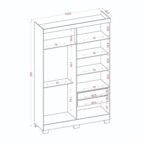 Guarda-roupa 04 portas, 02 gavetas internas com pés. Produzido em MDP 15mm e 12 mm de espessura , proporcionando resistência e durabilidade. Amplo espaço interno, garantindo maior firmeza ao móvel. Puxadores de MDF 25mm, cabideiro de madeira dando maior resistência. Gaveta ampla com melhor fixação, proporcionando maior conforto e comodidade em guardar roupas sem amassar e puxar fios.